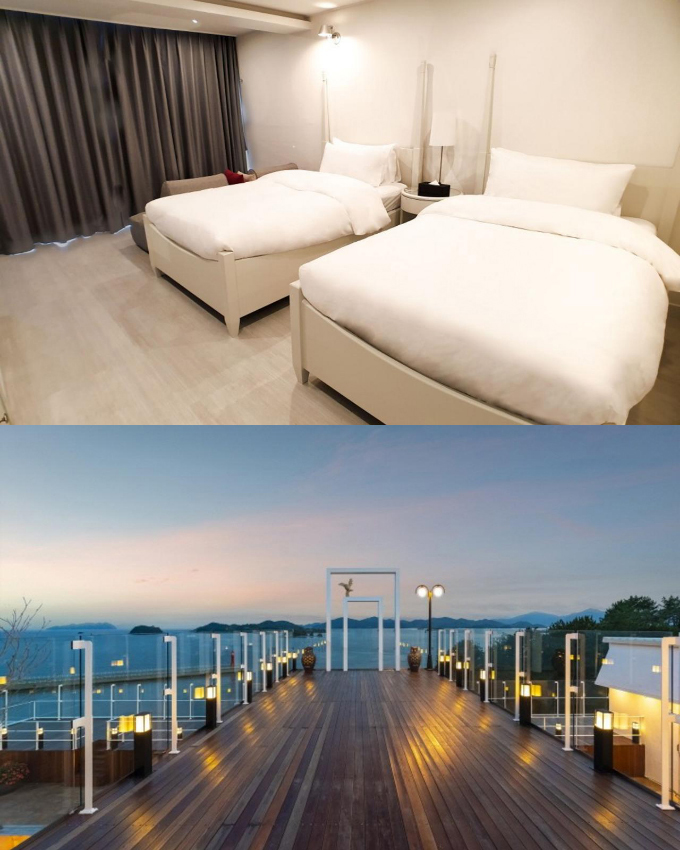 별관과 본관으로 나누어져있으며, 별관 스탠다드더블 / 별관 디럭스더블 / 본관 스탠다드더블(씨티뷰) / 본관 스탠다드더블(오션) / 본관 스탠다드 트윈(오션) / 본관 디럭스트리플(오션) / 본관 디럭스 온돌(씨티뷰) / 본관 디럭스 온돌스위트(씨티뷰) / 본관 부엉이패밀리스위트(오션)의 객실타입이 있으며, 본관1,2층에는 부엉이커피숍, 회센타, 루푸탑에는 삼천포 앞바다가 펼쳐져 보이는 인생포토존이 준비되어 있습니다