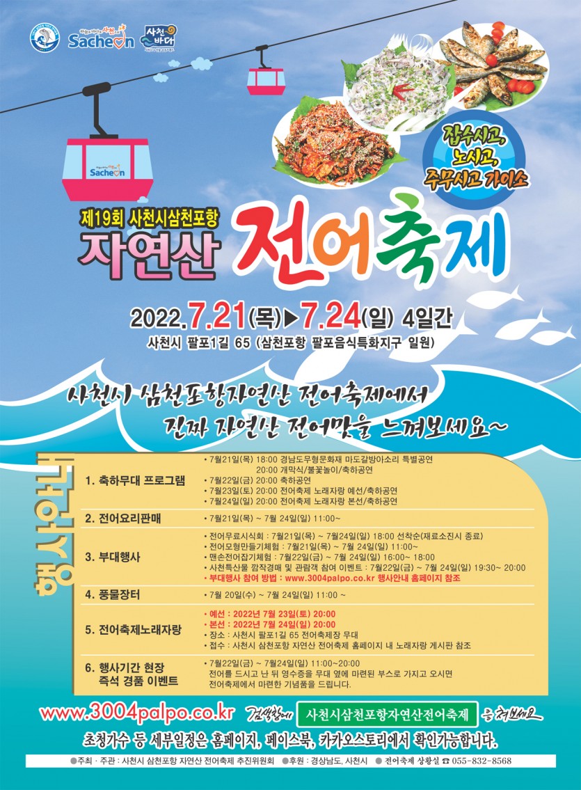 제19회 사천시 삼천포항 자연산 전어축제 행사 포스터 페이지 정보 작성자 관… 댓글 0건 조회 3,975회 작성일 22-06-24 16:58 본문 제19회 사천시 삼천포항 자연산 전어축제 행사 포스터 목록 이전글재19회 사천시 삼천포항 자연산 전어축제 행사안내 리플릿 22.06.24 다음글제19회 사천시 삼천포항 자연산 전어축제 개최 안내 22.06.13 댓글목록 댓글목록 등록된 댓글이 없습니다.