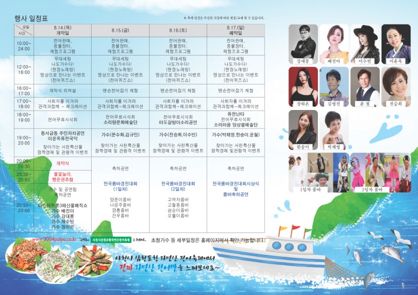 제 22회 사천시 삼천포항 자연산 전어축제 리플릿 페이지 정보 작성자 관… 댓글 0건 조회 1,981회 작성일 25-08-01 10:14 본문 제 22회 사천시 삼천포항 자연산 전어축제 리플릿 목록 다음글제21회 사천시 삼천포항 자연산 전어축제 일정 24.07.08 댓글목록 댓글목록 등록된 댓글이 없습니다.